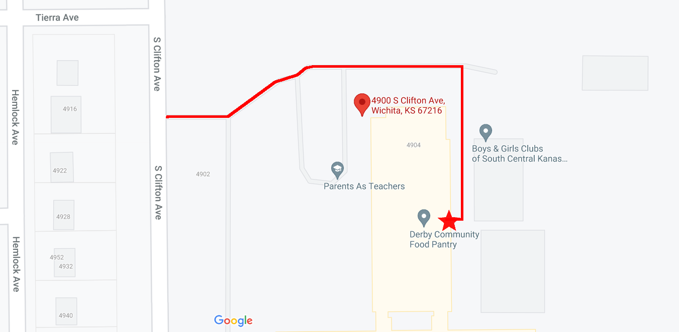 The pantry is located in Oaklawn, Kansas: 4902 S. Clifton Ave, Wichita KS, 67216.
